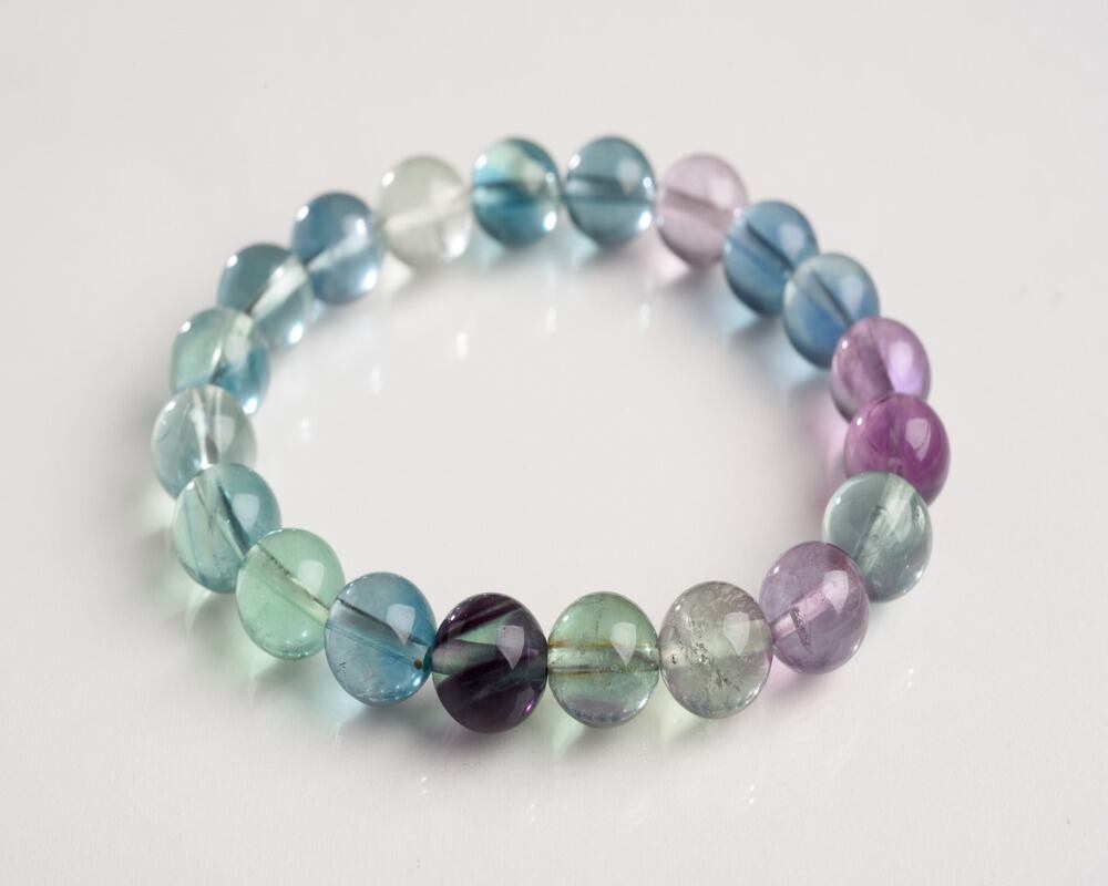 フローライトは色別にエネルギー的特性が多少異なります。あくまでも傾向としてですが、パープル系は明晰性や感受性を高める傾向、グリーン系は癒し的に働き、グラデーションカラーのものは、想像力を高める傾向が強いようです。